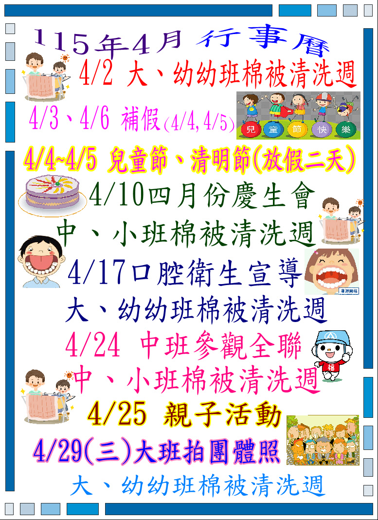 115年04月份行事曆